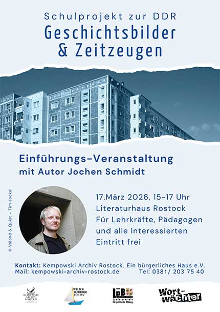 In Zusammenarbeit mit der Evangelischen Akademie der Nordkirche und der Dokumentations- und Gedenkstätte (DuG) in Trägerschaft der Landeszentrale für politische Bildung Mecklenburg-Vorpommern Rostock. Flyer